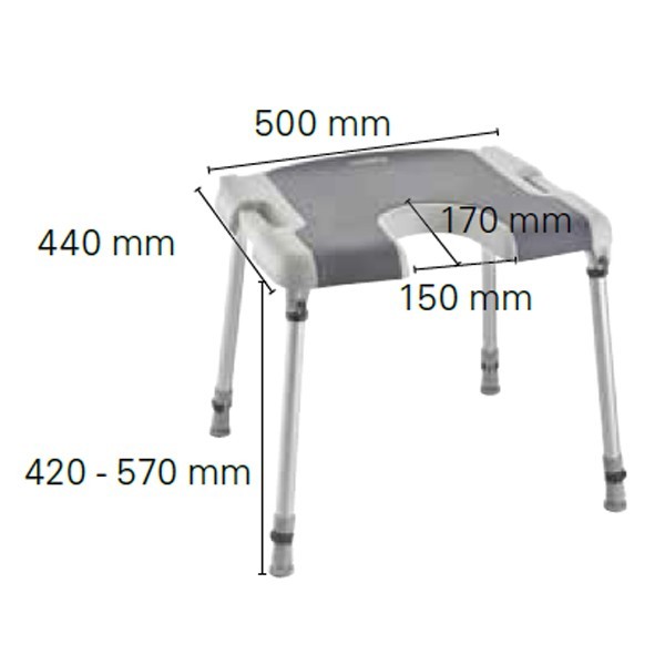 le tabouret de douche sorrento de douche sorrento offre un confort et une stabilité pour le bien être de l'utilisateur. il dispose d'une découpe intime et d'un réglage des pieds.